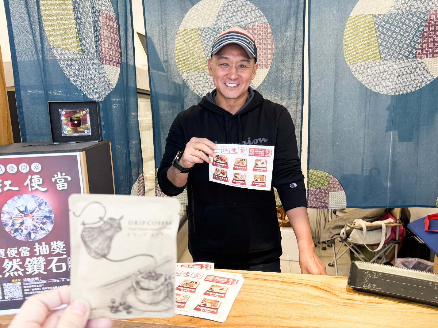 小編到現場的時候,店門口陸續來了不少客人,感覺大家都是衝著這間便當來的!紅布條寫著「新開幕」「蔡天吉」,搭配紅通通的開幕拱門,整個超有開張儀式感。店內是簡約木質風,乾淨明亮,看起來就很有質感。